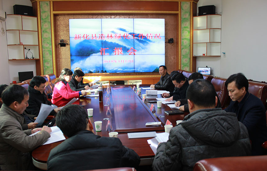1月12日,市政府副秘书长朱桂良、市林业局党组书记、局长邹华与考核组一行来到新化,采取听取汇报、查看资料、观看义务植树视频和现场考核的方式,对新化县2017度造林绿化工作情况进行考核考评。上午,汇报会在县林业局三楼会议室召开,县委常委、县委办主任刘迟辉主持汇报会,县人民政府副县长陈进作了专题汇报,市、县绿委办相关负责人参加会议。
