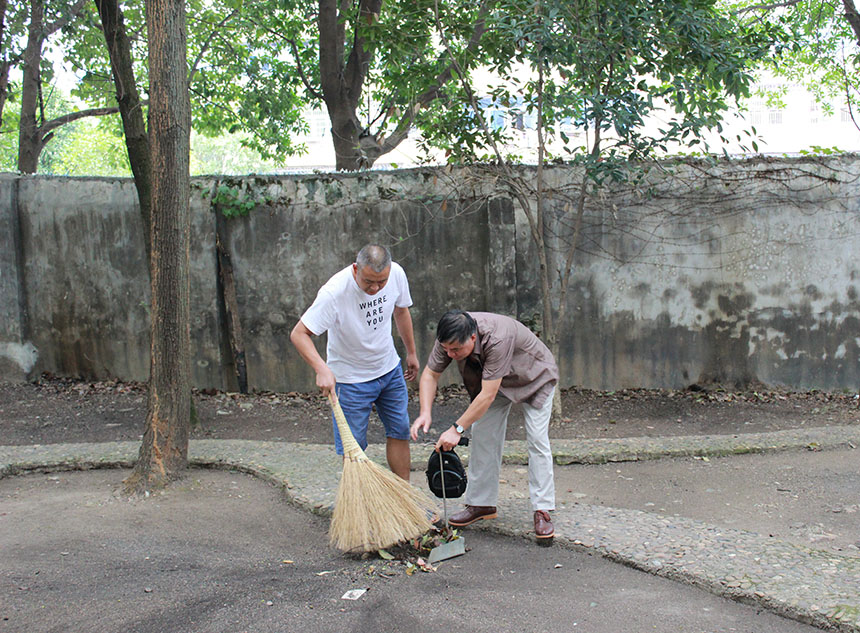活动中,同志们不怕脏、不怕累,手拿扫把、锄头、铁锹等劳动工具,对绿化带、过道、停车位等沿线的杂草、落叶、白色垃圾等进行了彻底清理,把干柴和有用建筑材料等进行分类、码堆处理。经过清理,后院环境焕然一新,为干部职工与家属创造了一个整洁干净的卫生环境。